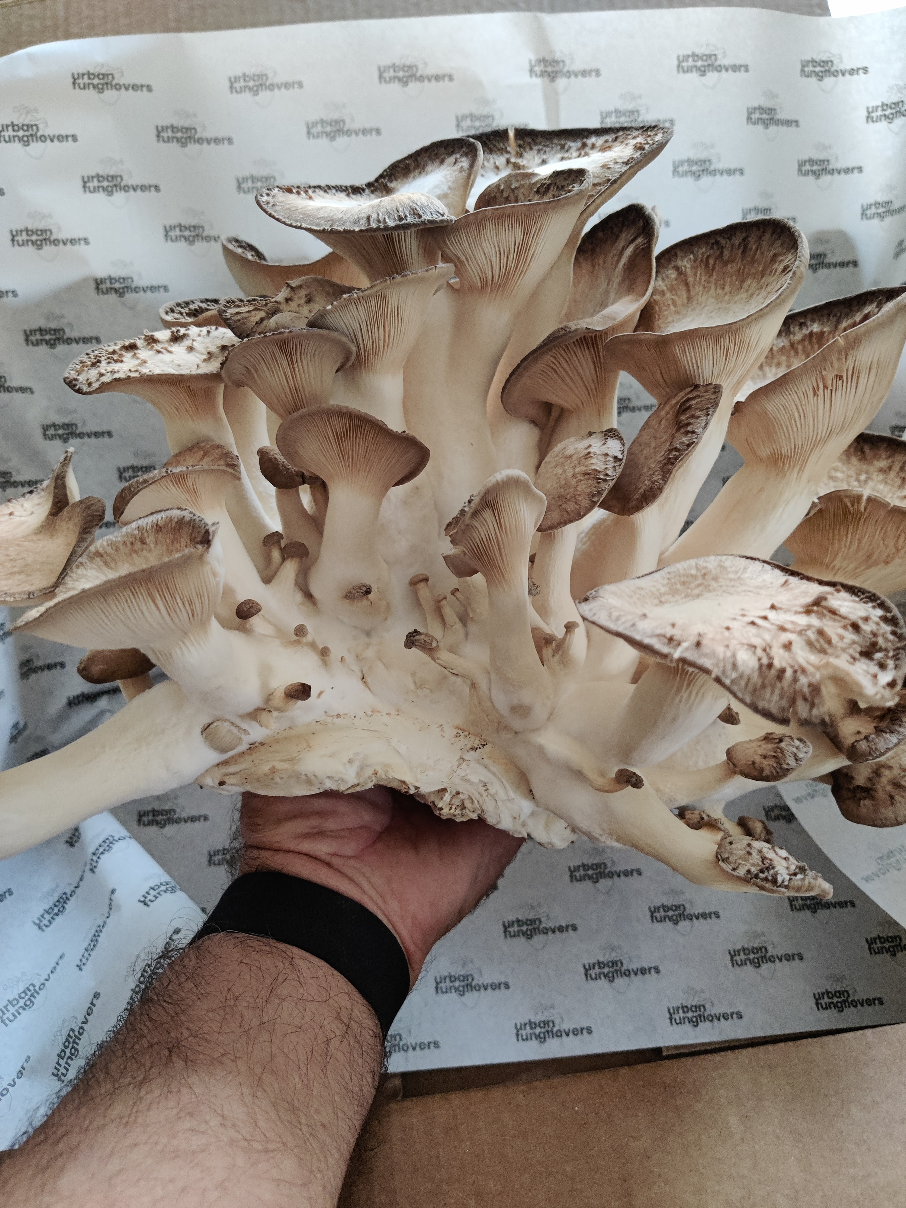 Seta gourmet de alta carnosidad y sabor intenso de umami con gran permanencia en paladar. Ideal para estofados o acompañar carnes y aves. También para hacer barbacoa de setas o menudo vegano. Agrega mucho sabor y textura a tus platillos con bajas calorías. Beneficios de reducción de colesterol, alta proteína y ayuda al sistema inmunológico.